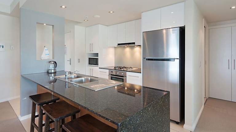 Die klimatisierten Apartments sind modern eingerichtet und verfügen über eine voll ausgestattete Küche mit Geschirrspüler und Backofen. Jedes Apartment ist mit einem Flachbild-Kabel-TV, einem DVD-Player sowie Wäschemöglichkeiten ausgestattet. Balkone bieten einen herrlichen Meerblick.