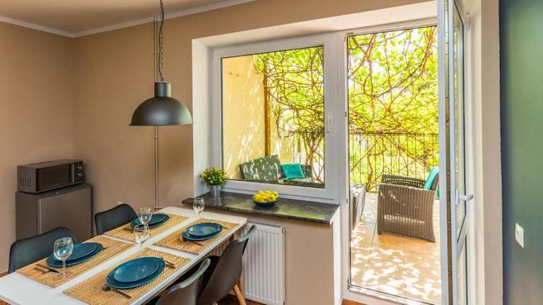 Przystań Nemo bietet Übernachtungsmöglichkeiten mit Terrassen oder Balkonen, ausgestattet mit einem Flachbild-TV und kostenlosem WLAN. Zur Verfügung stehen auch kostenlose Fahrräder und ein Garten.