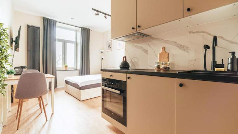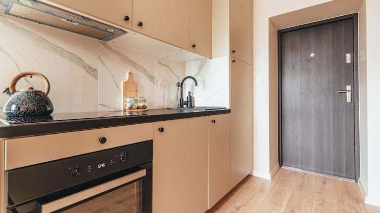 Das Apartment verfügt über ein komfortables Schlafzimmer, in dem Sie sich nach einem erlebnisreichen Tag entspannen können. Der Flachbild-TV bietet Ihnen Unterhaltungsmöglichkeiten und die gut ausgestattete Küchenzeile ermöglicht es Ihnen, Ihre eigenen Mahlzeiten zuzubereiten. Das moderne Badezimmer verfügt über eine Dusche und Handtücher sowie Bettwäsche werden gestellt, damit Sie sich wie zu Hause fühlen können.