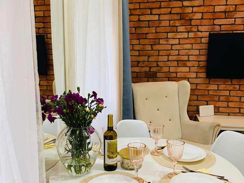 Przytulny apartament z tarasem ist eine Ferienwohnung, die durch eine Veranda oder einen Patio sowie einen Garten ergänzt wird. Kostenloses WLAN ist in der gesamten Unterkunft verfügbar. Der private Gastgeber gewährleistet einen persönlichen Aufenthalt, jedoch sind Junggesellen-/Junggesellinnenabschiede und ähnliche Feiern nicht erlaubt.