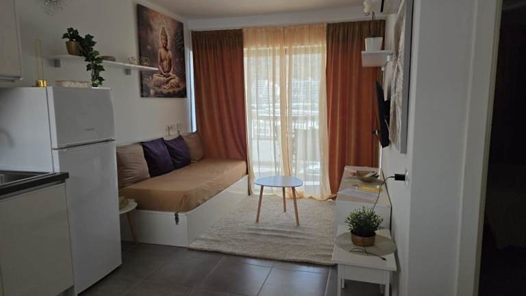 Die Ferienwohnung besteht aus einem Schlafzimmer, einem Wohnzimmer, einer voll ausgestatteten Küche mit Kühlschrank und Wasserkocher sowie einem Badezimmer mit Dusche und Haartrockner. Handtücher und Bettwäsche werden zur Verfügung gestellt. Die Unterkunft bietet verschiedene Annehmlichkeiten wie Klimaanlage, Nichtraucherzimmer und Terrasse.