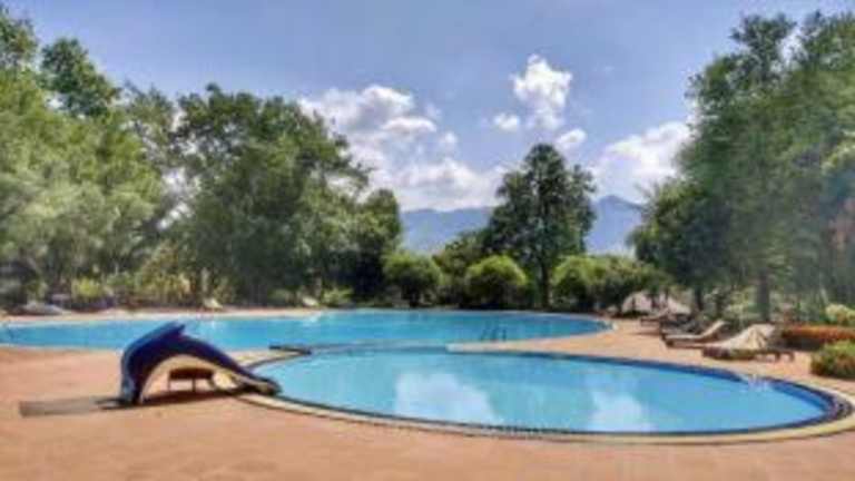 Das Pung-Waan Resort ist ein idyllisches Hotel direkt am Flussufer des Kwai Noi in Westthailand. Hier können Sie sich auf einen entspannten Aufenthalt freuen, der von einem Außenpool, zwei Restaurants und gemütlichen Zimmern mit Flussblick geprägt ist. Genießen Sie Aktivitäten im Freien wie Bambus-Rafting und Kanufahren oder entspannen Sie bei einer Massage oder Yoga-Unterricht. Das Restaurant Rebieng verwöhnt Sie mit köstlichen thailändischen Spezialitäten und internationalen Gerichten, während die Lobbybar bis spät in die Nacht geöffnet ist. Das Resort bietet auch Banketträumlichkeiten für Feierlichkeiten und Treffen mit Freunden und Familie. Die Städte Bangkok und Kanchanaburi sind ebenfalls gut erreichbar.