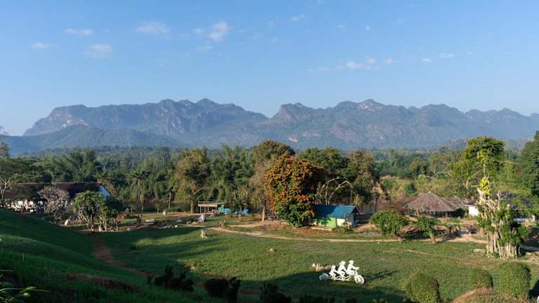 Das Pung-Waan Resort liegt direkt am Flussufer des Kwai Noi in Westthailand. Die idyllische Lage bietet einen ruhigen Rückzugsort und gleichzeitig eine gute Erreichbarkeit der Städte Bangkok und Kanchanaburi. Sie können die natürliche Schönheit der Umgebung genießen und Aktivitäten wie Bambus-Rafting und Kanufahren ausprobieren.