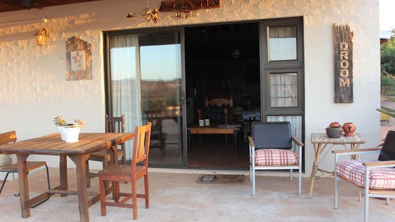 Das Apartment im PurePlaas Self catering Volmoed Oudtshoorn Klein Karoo verfügt über ein Schlafzimmer, ein Badezimmer, einen Essbereich und eine voll ausgestattete Küchenzeile. Zur Ausstattung gehören auch ein Flachbild-TV, Bettwäsche und Handtücher. Das Highlight des Apartments ist die Terrasse mit einem herrlichen Blick auf die umliegenden Berge.