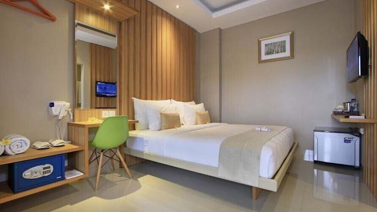 Die Zimmer im Puri Padma Hotel sind klimatisiert und bieten allen Komfort, den Sie für einen angenehmen Aufenthalt benötigen. Jedes Zimmer verfügt über einen Flachbild-Kabel-TV, einen Kleiderschrank, einen Sitzbereich, einen Safe und einen Wasserkocher. Das eigene Badezimmer ist mit einer Dusche, einem Haartrockner, Hausschuhen und kostenfreien Pflegeprodukten ausgestattet. Vom Zimmer oder der Terrasse aus können Sie einen Blick auf den Garten und den Pool genießen.