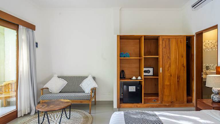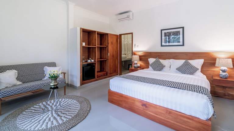 Die klimatisierten Zimmer im Puri Uma Ratu sind komfortabel und stilvoll eingerichtet. Jedes Zimmer verfügt über einen Schreibtisch, einen Wasserkocher, einen Kühlschrank, eine Minibar, einen Safe, einen Flachbild-TV, eine Terrasse und ein eigenes Badezimmer mit Bidet. Bettwäsche und Handtücher werden gestellt, um Ihren Aufenthalt so angenehm wie möglich zu machen.