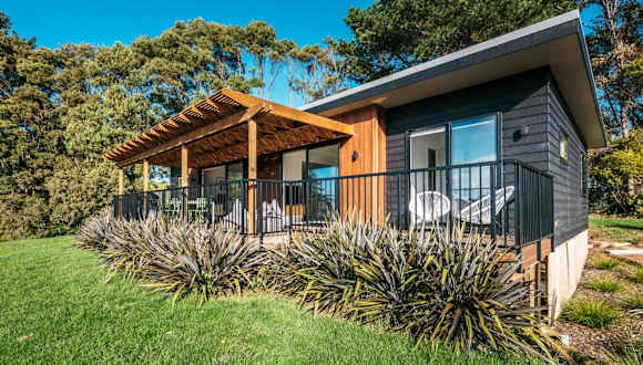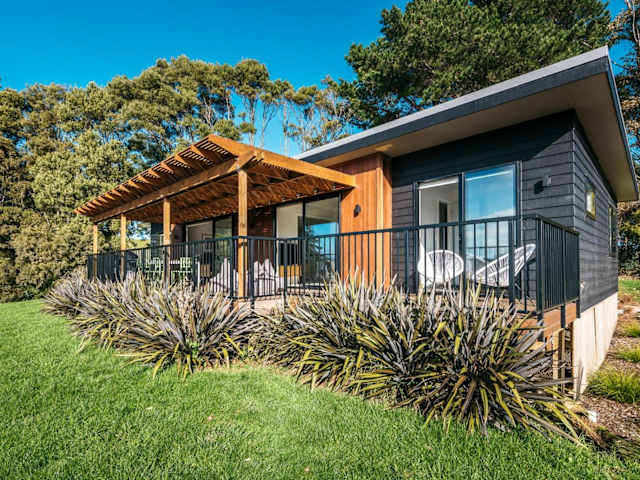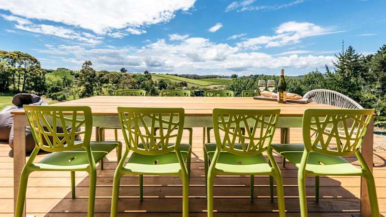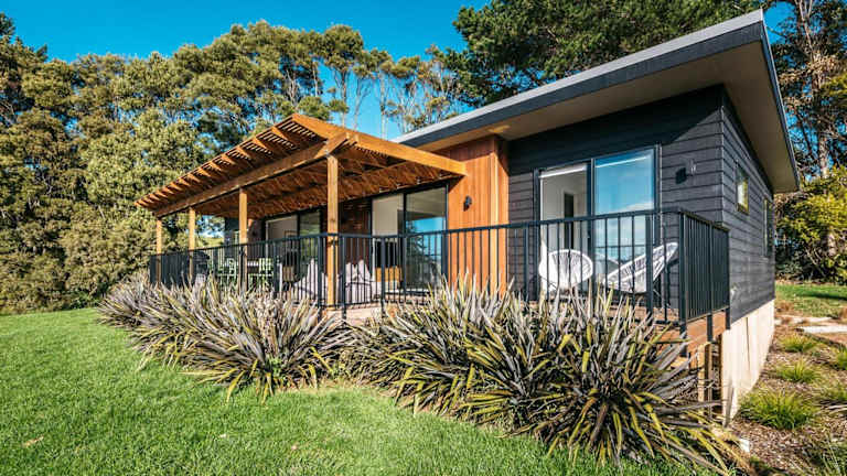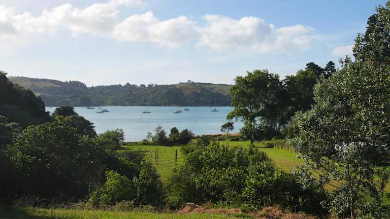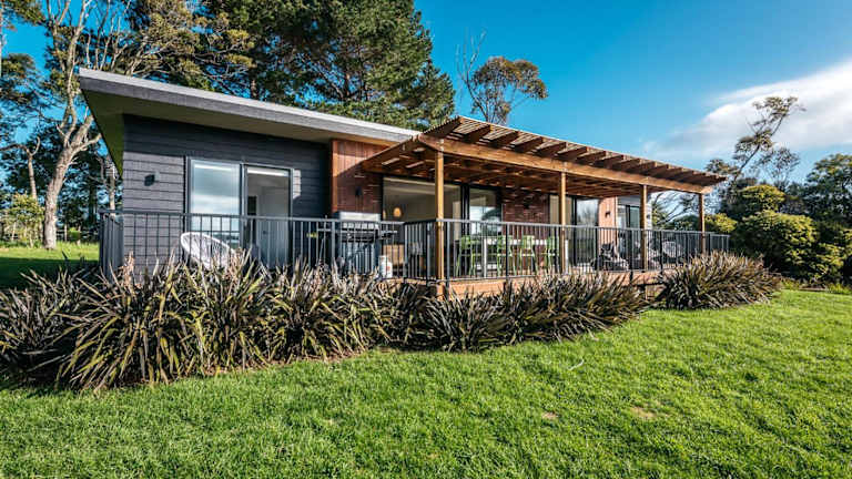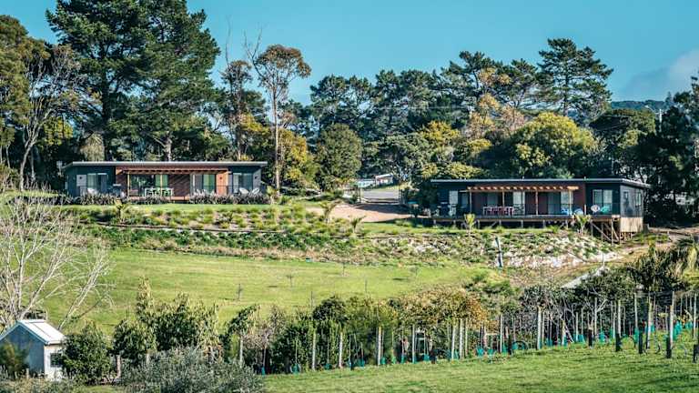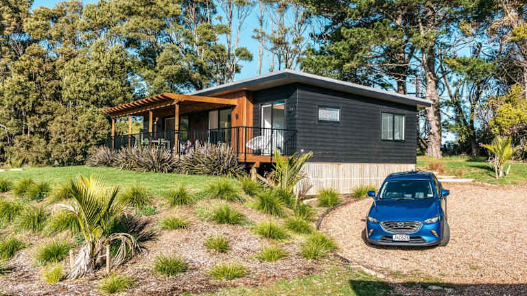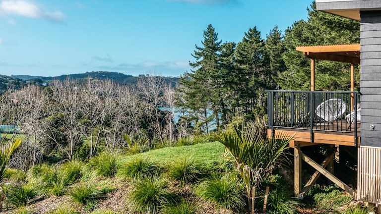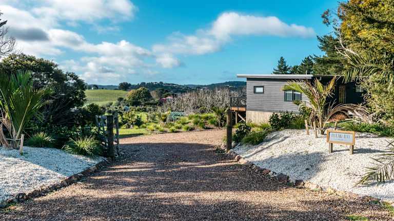 Die Unterkunft befindet sich in Te Whau Bay, in der Nähe der Strände Little Oneroa Beach und Oneroa Beach, die sich 2,5 km beziehungsweise 2,6 km entfernt befinden. Der Flughafen Auckland ist 43 km von der Unterkunft entfernt.