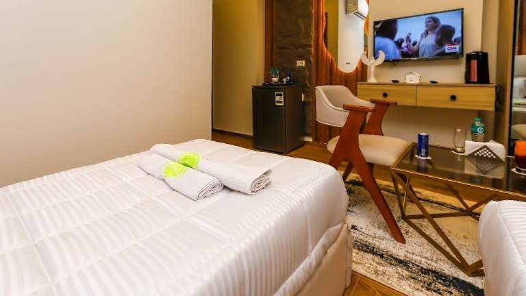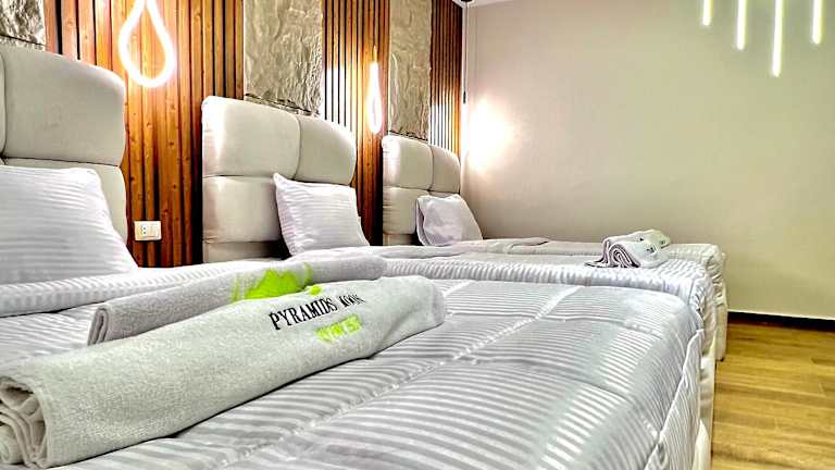 Die klimatisierten Zimmer im Pyramids moon Tower verfügen über Annehmlichkeiten wie einen Schreibtisch, eine Kaffeemaschine, einen Kühlschrank, eine Minibar, einen Safe, einen Flachbild-TV sowie eine Veranda oder ein Patio. Jedes Zimmer hat ein eigenes Badezimmer mit einem Bidet. Zu den Ausstattungsmerkmalen gehören auch ein Wasserkocher, während einige Zimmer über Balkone und Bergblick verfügen. Bettwäsche und Handtücher werden bereitgestellt.