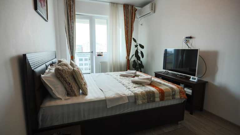Das Homey Apartment 2 Zimmer Palas Mall befindet sich in einer günstigen Lage in Iaşi. Es liegt nur 1 km vom Kulturpalast und 2 km vom Iaşi Athenaeum entfernt. In der Nähe des Apartments finden Sie auch die Kathedrale Iasi, das Nationaltheater Vasile Alecsandri und die rumänische Nationaloper Iași. Diese zentrale Lage ermöglicht es Ihnen, bequem die wichtigsten Sehenswürdigkeiten und kulturellen Einrichtungen der Stadt zu besuchen. Der internationale Flughafen Iași ist nur 6 km entfernt und bietet eine gute Anbindung an das Apartment.