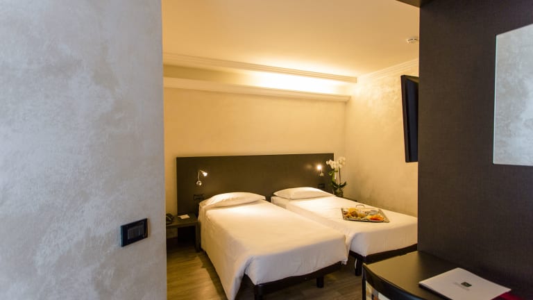 Die klimatisierten Zimmer im B&B Hotel Borgaro Torinese bieten den Gästen einen angenehmen Aufenthalt. Die Zimmer verfügen über kostenloses WLAN, einen LCD-TV mit Sportkanälen und ein komfortables Bett. Für zusätzlichen Komfort stehen den Gästen ein Safe und eine Minibar zur Verfügung.
