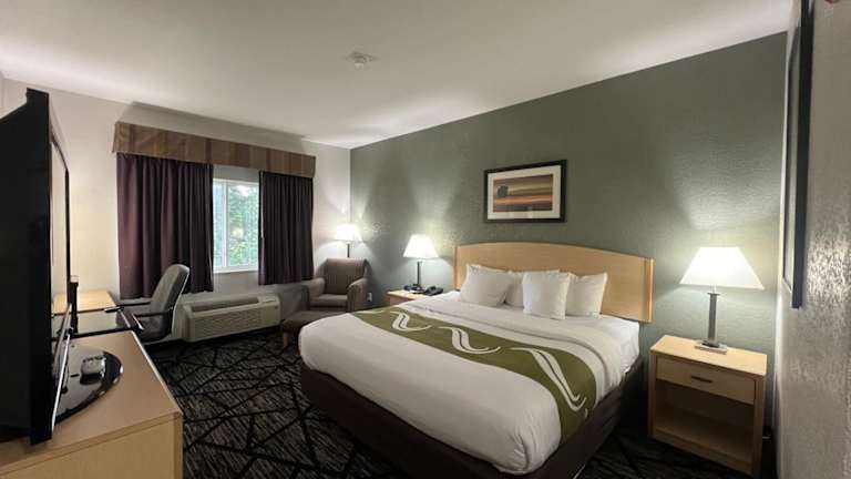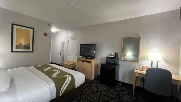 Das Quality Inn & Suites Loveland Hotel verfügt über 62 Nichtraucherzimmer, die über drei Etagen verteilt sind. Die Zimmer sind mit modernen Annehmlichkeiten wie einem Flachbild-TV, einem Kühlschrank, einer Mikrowelle, einer Kaffeemaschine, einem Haartrockner und einem Bügeleisen/-brett ausgestattet. Einige Zimmer verfügen auch über einen Whirlpool. Das Hotel bietet auch rollstuhlgerechte Einrichtungen für Gäste mit eingeschränkter Mobilität.