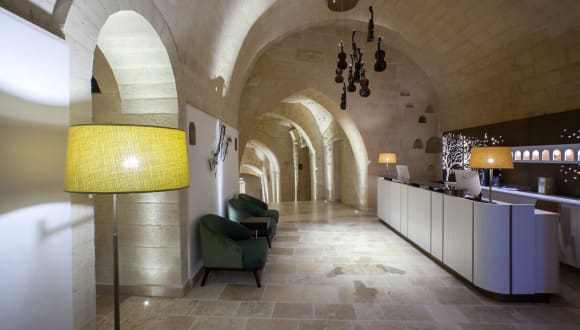 Das Quarry Resort - historische Residenz Palazzo Zicari befindet sich im Herzen der Sassi von Matera und ist eines der repräsentativsten Gebäude der Civita mit Blick auf den Sasso Caveoso. Der typische Stein der Region, "der Tuffstein", prägt das Gebäude und macht es ätherisch und zeitlos. Wie zeitlos, fest zwischen Vergangenheit und Gegenwart sind die Hypogebühren, die Kapelle, die Zimmer und Suiten, die Loungebar mit Panoramaterrasse, von der aus Sie neben der Kirche Santa Maria den historisch-natürlichen archäologischen Park der Murgia Materana bewundern können von Idris und Piazza San Pietro Caveoso.