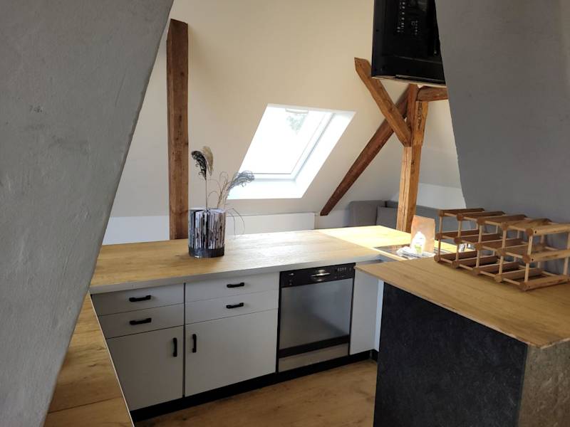 Die Unterkünfte im Quartier Mehrblick sind gemütlich und komfortabel eingerichtet. Jedes Apartment verfügt über kostenfreies WLAN, eine gut ausgestattete Küche mit Kühlschrank, Backofen, Geschirrspüler und Kaffeemaschine. Die Gäste können auch den schönen Garten mit Terrasse und den herrlichen Stadtblick genießen.
