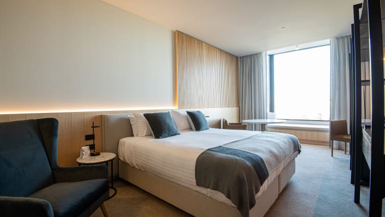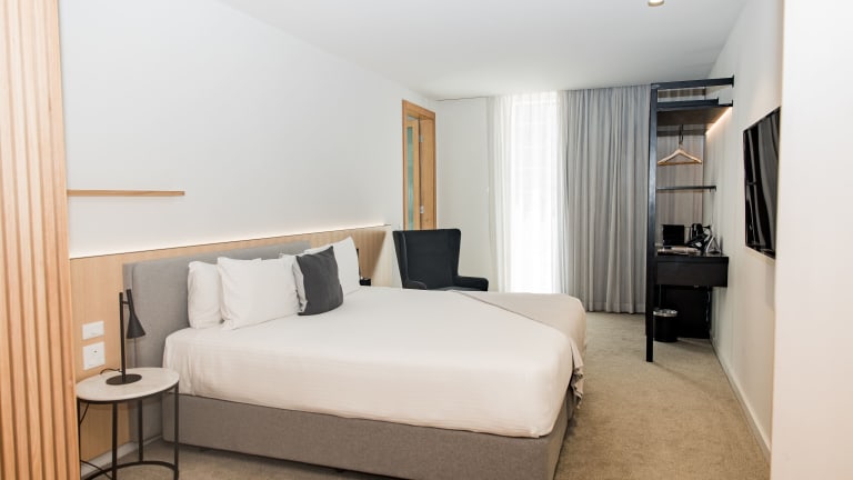Die Zimmer im Quay Perth sind mit einem Doppelbett, einem Kleiderschrank, einem Flachbild-TV, einem eigenen Badezimmer, Bettwäsche und Handtüchern ausgestattet. Weitere Annehmlichkeiten umfassen eine Minibar, einen Kühlschrank, eine Tee-/Kaffeemaschine sowie einen Safe. Einige Zimmer bieten Stadtblick. Zudem sind barrierefreie Zimmer verfügbar, ausgestattet mit einem rollstuhlgerechten Bad. WLAN ist kostenfrei.