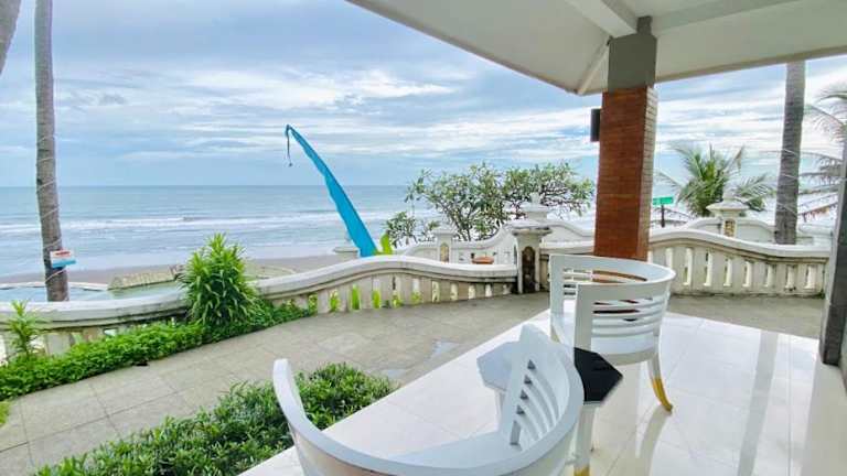 Das Queen of the South Beach Resort ist ein charmantes Strandresort am Parangtritis-Strand in Yogyakarta. Hier können Gäste klimatisierte Zimmer mit eigenem Balkon genießen und den atemberaubenden Blick auf den Indischen Ozean vom Außenpool aus bewundern. Das Resort bietet Entspannungsmöglichkeiten wie Massagen und kostenfreies WLAN in den öffentlichen Bereichen. Das Restaurant serviert eine Auswahl an authentischen indonesischen und internationalen Gerichten. Mit dem Tourenschalter können Sie Ausflüge zu den wichtigsten Sehenswürdigkeiten von Yogyakarta organisieren.