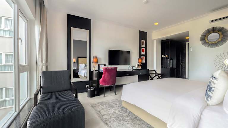 Die Zimmer im Queenco Hotel & Casino sind modern gestaltet und klimatisiert. Jedes Zimmer verfügt über einen Flachbild-Smart-TV, einen Schreibtisch und ein eigenes Badezimmer mit einem Haartrockner und kostenlosen Pflegeprodukten. Die meisten Zimmer bieten zudem einen privaten Balkon mit Meerblick. Einige Zimmer verfügen über einen separaten Sitzbereich zum Entspannen. WLAN ist in allen Bereichen kostenlos verfügbar.