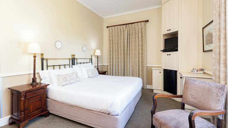 Das Queens Hotel befindet sich im Herzen von Oudtshoorn, direkt an der Hauptstraße. Es ist das drittälteste Hotel Südafrikas, das im Kolonialstil erbaut wurde. In der Nähe befinden sich das C.P. Nel Museum, welches fußläufig erreichbar ist, sowie die Cango Wildlife Ranch, die 3 km entfernt liegt. Die Cango Caves sind in 30 Minuten mit dem Auto zu erreichen. Der Flughafen George Airport ist ca. 55 km entfernt, außerdem ist der Flughafen Port Elizabeth etwa 395 km vom Hotel entfernt.