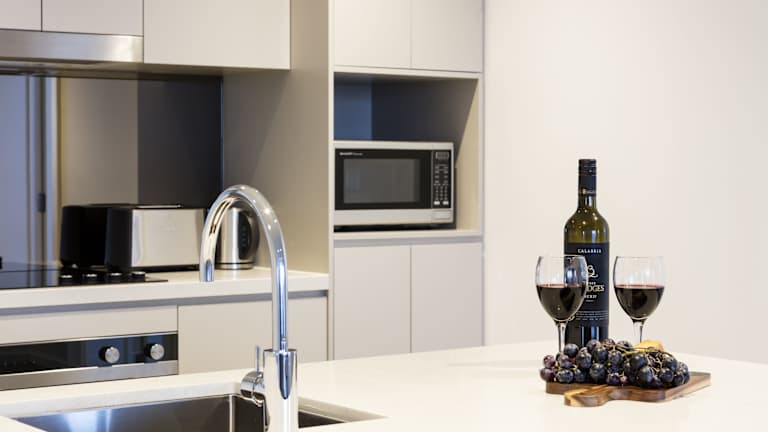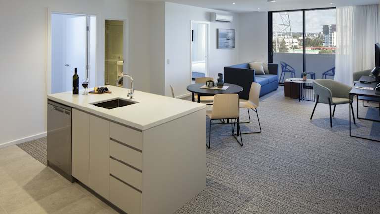 Die geräumigen Apartments im Quest Robina Hotel sind modern eingerichtet und bieten allen Komfort für einen angenehmen Aufenthalt. Jedes Apartment verfügt über eine voll ausgestattete Küche, ein separates Esszimmer und einen gemütlichen Wohnbereich mit einem Flachbild-Sat-TV. Die klimatisierten Zimmer bieten zudem einen Balkon und ein eigenes Badezimmer mit Dusche und kostenlosen Pflegeprodukten.