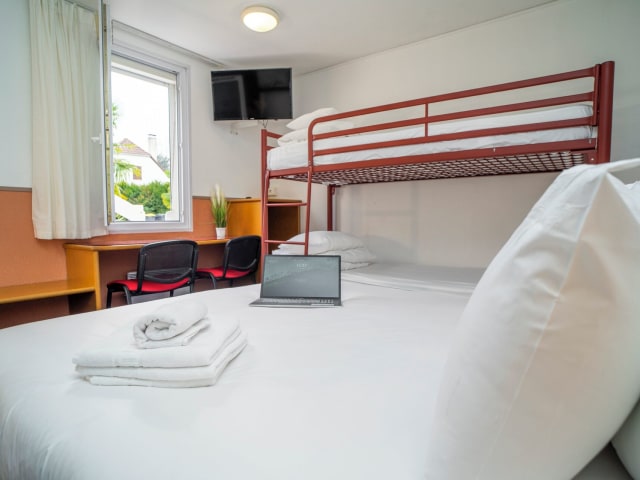 Das Quick Palace liegt im Nordosten von Pau, 4 km vom Stadtzentrum und nur 1 km von der Autobahn A64 La Pyrénéenne entfernt. Die Sportarena befindet sich in 1 km Entfernung, während der Nationalforst Bastard 2 km entfernt liegt. Vom Flughafen Lourdes trennen die Gäste 35 km.
