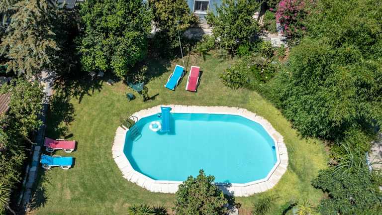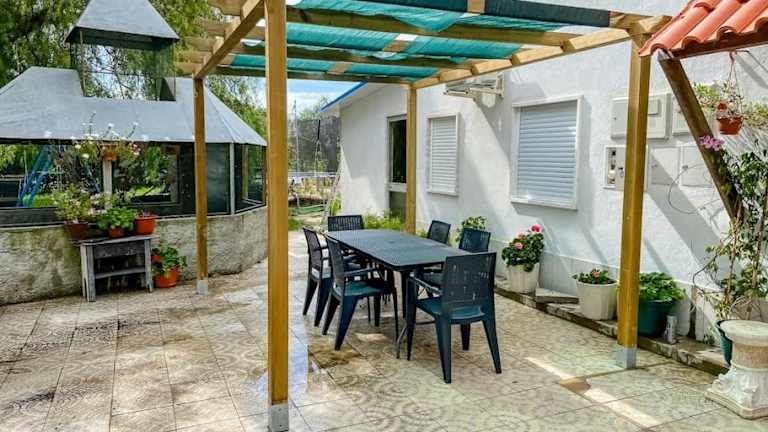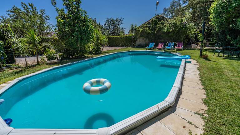 Das Ferienhaus verfügt über drei Schlafzimmer, ein Wohnzimmer sowie eine voll ausgestattete Küche mit Kühlschrank und Kaffeemaschine. Es sind zudem drei Badezimmer mit Bidet und Dusche vorhanden. Handtücher und Bettwäsche werden bereitgestellt. Das Haus ist klimatisiert und bietet einen Blick auf den Garten.