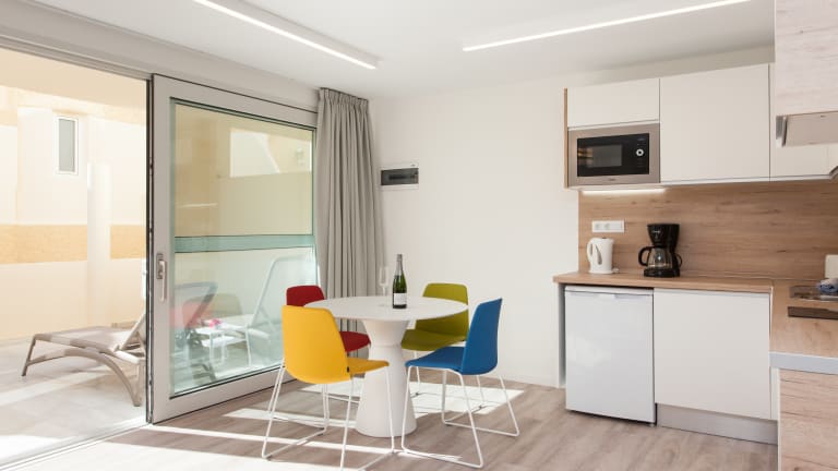 1-ZIMMER-APPARTEMENT STANDARD Die Appartements mit 1 Schlafzimmer haben eine Wohnfläche von 35 m2 und sind voll ausgestattet mit Wohnzimmer, Schlafzimmer für zwei Personen (oder drei, wenn gewünscht) und Balkon oder möblierter Terrasse mit herrlichem Blick auf das Meer oder die Schätze der Costa Calma. 1-ZIMMER-APPARTEMENT MIT MEERBLICK Die modernen Ein-Schlafzimmer-Wohnungen haben eine Wohnfläche von 35 m2 und sind voll ausgestattet mit Wohnzimmer, Schlafzimmer für zwei Personen (oder drei, wenn gewünscht) und Balkon oder möblierter Terrasse mit herrlichem Blick auf das Meer oder die Schätze der Costa Calma. *Die Appartements mit Meerblick haben einen kleinen Aufpreis. 1-ZIMMER-APPARTEMENT SUPERIOR Die modernen Appartements mit 1 Schlafzimmer Superior haben eine Wohnfläche von 35 m2 und sind voll ausgestattet mit Wohnzimmer, Schlafzimmer für zwei Personen (oder drei, wenn gewünscht) und Balkon oder möblierter Terrasse mit herrlichem Blick auf die Schätze der Costa Calma. *Die Appartements mit Meerblick haben einen kleinen Aufpreis. 2-ZIMMER-APPARTEMENT Die modernen 2-Zimmer-Appartements haben eine Wohnfläche von 50 m2 und sind voll ausgestattet mit Wohnzimmer, zwei Schlafzimmern und Balkon oder möblierter Terrasse mit teilweise Meerblick. *Die Appartements mit teilweise Meerblick haben einen kleinen Aufpreis.