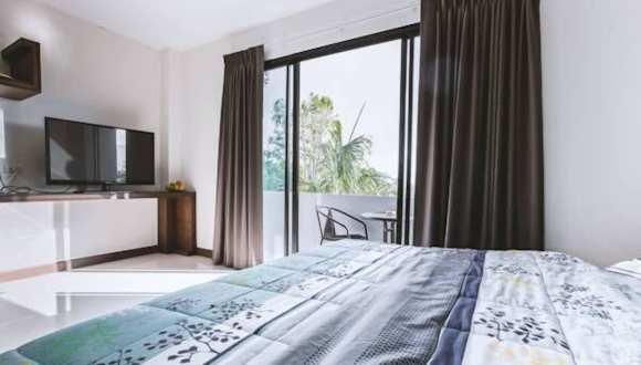 Die Ra Residence Phuket bietet eine angenehme Unterkunft mit kostenlosem WLAN und einem schönen Blick auf die umliegenden Berge.