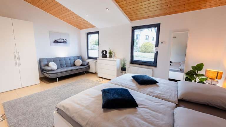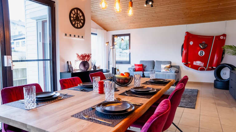 Die Unterkunft befindet sich in Meuspath, nur 2,8 km vom Nürburgring entfernt. Die Umgebung bietet verschiedene Sehenswürdigkeiten, darunter die Abtei Maria Laach in 28 km Entfernung, die Reichsburg Cochem in 43 km und die Burg Eltz in 46 km. Der nächstgelegene Flughafen ist der Flughafen Köln/Bonn, der 74 km entfernt liegt.