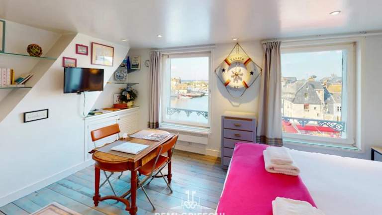 Die Unterkunft befindet sich in Honfleur, nur 1,6 km vom Strand Plage du Butin entfernt. In unmittelbarer Nähe befinden sich das Ethnographie- und Volkskunstmuseum sowie der alte Hafen von Honfleur, die jeweils 200 m entfernt sind. Darüber hinaus liegt das Museum La Forge ebenfalls in 200 m Entfernung. Der SNCF-Bahnhof Trouville-Deauville ist 15 km entfernt und der nächstgelegene Flughafen, der Flughafen Deauville, ist 9 km entfernt.