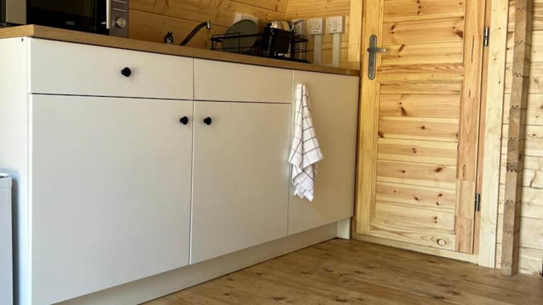 Die Ferienwohnung umfasst ein separates Schlafzimmer, ein Wohnzimmer und eine voll ausgestattete Küchenzeile, die mit einem Kühlschrank und einer Mikrowelle eingerichtet ist. Zudem gibt es ein Badezimmer.