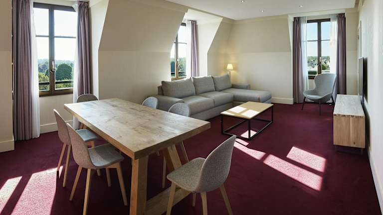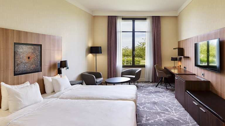 Our 250 elegant rooms and suites are designed for you to relax and unwind after an exciting day at Disneyland® Paris or on the golf courses. These bright and modern rooms have everything you need for an unforgettable stay. Golf fans can enjoy the stunning views over the golf courses surrounding the hotel. Non-smoking and accessible rooms are also available upon request.