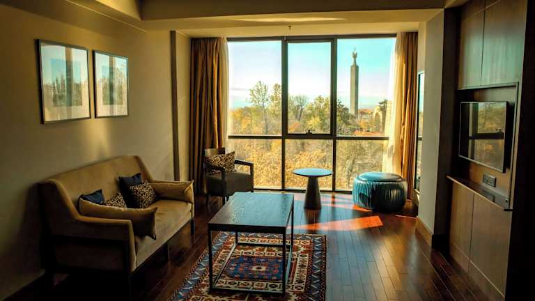 Das Radisson BLU Hotel Yerevan bietet einen luxuriösen Aufenthalt in einer atemberaubenden Umgebung mit Blick auf den Park und den Berg Ararat. Die geräumigen Zimmer sind stilvoll eingerichtet und bieten hochwertige Annehmlichkeiten. Genießen Sie die armenische Hausmannskost im Restaurant oder besuchen Sie die Restaurantbar auf dem Dach für internationale Gerichte und Sushi. Das Hotel verfügt auch über einen Fitnessraum und einen Innenpool. Die Lage des Hotels ist ideal, nur wenige Minuten vom Stadtzentrum von Jerewan entfernt und in der Nähe des Victory Parks.