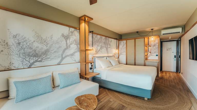 Wachen Sie auf zu den Klängen und der Schönheit von Mauritius Schwelgen Sie in unseren luxuriösen 4 Sterne Unterkünften und dem entspannenden Rauschen des Ozeans. Jedes unserer 100 Zimmer heißt Sie mit einem minimalistischen Design und auffallenden blauen Akzenten in Anlehnung an den Indischen Ozean willkommen. Genießen Sie den Ausblick auf Gärten, Berge und das Meer, während Sie durchdachte Annehmlichkeiten wie Satellitenfernsehen und kostenloses high-speed WLAN nutzen. Hauptmerkmale: • Kostenloses, high-speed WLAN • Haartrockner • Dockingstation • Telefon • Individuelle Klimaanlage • Minibar • Safe • Dusche • Tee & Kaffee auf dem Zimmer • Fernseher Kinder Unser Resort ist exklusiv für Gäste ab 18 Jahren reserviert