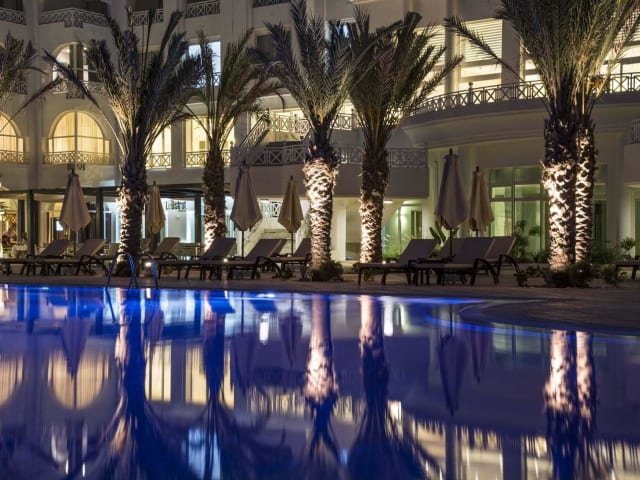 Das Radisson Blu Resort & Thalasso Hammamet ist ein exklusives Hotel in Hammamet, das mit einem Swimmingpool, einem Garten und einer orientalisch gestalteten Terrasse beeindruckt. Die Zimmer bieten einen herrlichen Blick auf das Meer, den Pool oder den Garten und sind mit modernen Annehmlichkeiten wie kostenlosem WLAN und einem TV ausgestattet. Im hoteleigenen Restaurant können Sie typisch tunesische und internationale Gerichte genießen. Entspannung finden Sie in der Sauna, dem Whirlpool oder dem Türkischen Dampfbad. Das Hotel liegt in der Nähe der Kasbah von Hammamet und des Stadtzentrums.