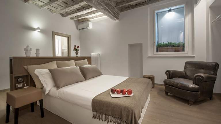 Die Raffaello Charmsuite ist eine einzigartige Unterkunft im Herzen von Rom, die in einem historischen Gebäude aus dem 16. Jahrhundert untergebracht ist. Hier erwarten Sie Designzimmer, kostenfreies WLAN und eine exzellente Lage nur wenige Schritte vom Fluss Tiber und der Piazza Navona entfernt. Erleben Sie den Charme vergangener Zeiten in den geräumigen, klimatisierten Zimmern mit moderner Ausstattung und einer harmonischen Mischung aus antiken und modernen Möbeln. Entdecken Sie die Sehenswürdigkeiten der Stadt, wie den Vatikan, der nur einen kurzen Spaziergang entfernt ist, und nutzen Sie die gute Anbindung an den öffentlichen Nahverkehr.