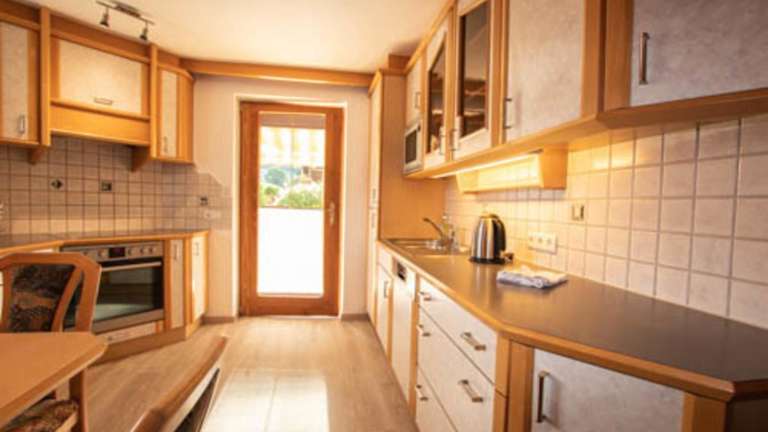 Die Ferienwohnung umfasst 4 separate Schlafzimmer und eine voll ausgestattete Küche, die mit einem Kühlschrank und einem Geschirrspüler ausgestattet ist. Ein Badezimmer steht zur Verfügung. Auf Wunsch können Handtücher und Bettwäsche gegen Aufpreis bereitgestellt werden.