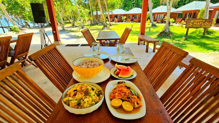 Raflow Resort Raja Ampat bietet Übernachtungsmöglichkeiten mit einem Garten, einem kostenlosen Privatparkplatz, einer Terrasse und einem Restaurant. Die Unterkunft stellt Zimmerservice und kostenfreies WLAN zur Verfügung.