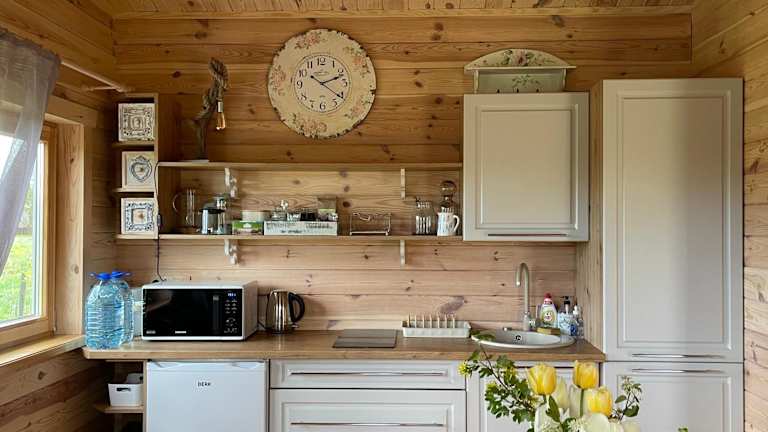 Im Ragaciema Skadiņi finden Sie gut ausgestattete Unterkünfte mit allem, was Sie für einen komfortablen Aufenthalt benötigen. Die Unterkünfte verfügen über eine Terrasse mit Blick auf den Garten, eine voll ausgestattete Küche mit Kühlschrank und Mikrowelle sowie ein eigenes Badezimmer mit Dusche. Ein gemütlicher Sitz- und Essbereich steht Ihnen ebenfalls zur Verfügung.