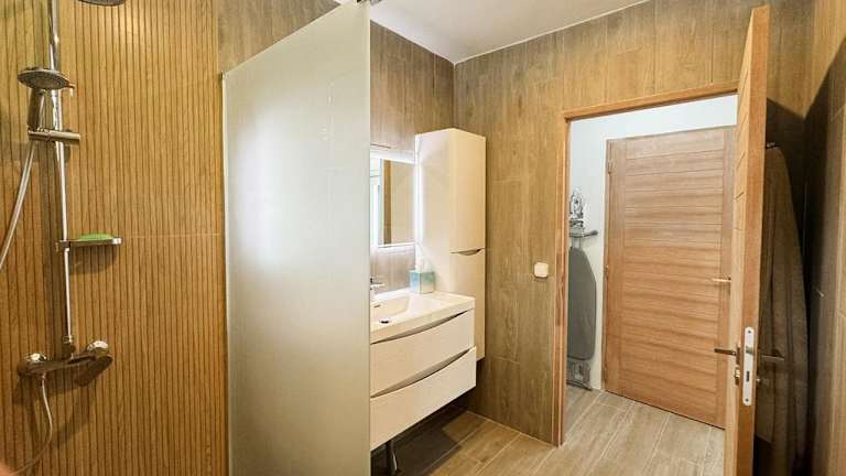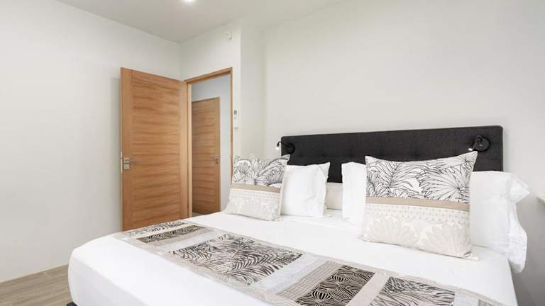 Das Ferienhaus besteht aus einem separaten Schlafzimmer, einem Wohnzimmer und einer voll ausgestatteten Küche, die über einen Kühlschrank und einen Ofen verfügt. Es gibt zwei Badezimmer sowie einen Flachbild-TV. Die Unterkunft ist klimatisiert und bietet Meerblick. Ein kostenloser Privatparkplatz ist ebenfalls verfügbar.