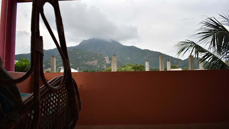 Das Rainbow Guest House Tiruvannamalai bietet eine Terrasse, auf der Sie die malerische Umgebung genießen können.