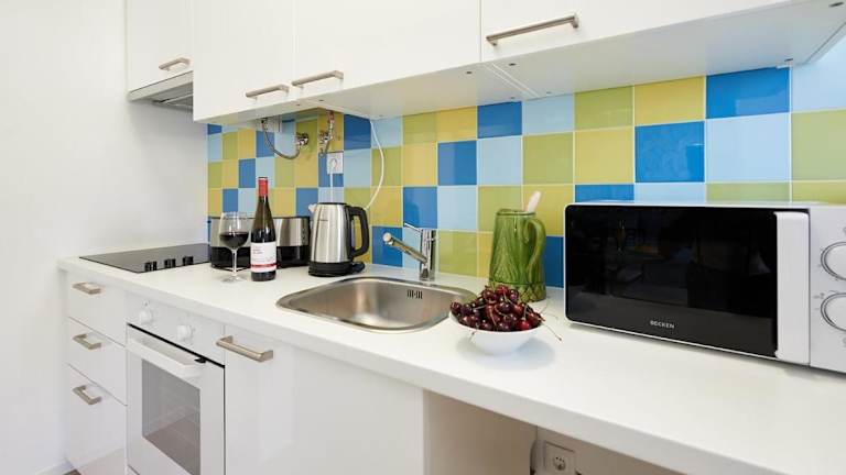 Die Ferienwohnung verfügt über ein separates Schlafzimmer, eine voll ausgestattete Küche mit Kühlschrank und Ofen sowie ein Badezimmer. Handtücher und Bettwäsche werden bereitgestellt.