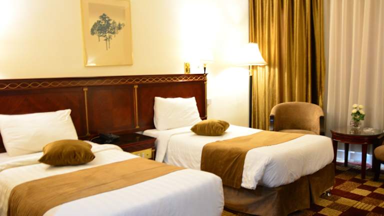Die Zimmer im Rakeen Hotel sind mit einem Kleiderschrank, einer Klimaanlage, einem Flachbild-TV sowie einem Schreibtisch und einem Wasserkocher ausgestattet. Einige Wohneinheiten bieten zudem einen Blick auf die Stadt.