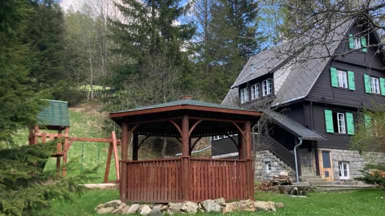Das Ferienhaus Rakouská vila bietet Platz für bis zu 10 Personen und verfügt über 5 gemütliche Schlafzimmer. Das Wohnzimmer ist mit einem Flachbild-Kabel-TV ausgestattet und die voll ausgestattete Küche bietet alles, was Sie für die Zubereitung Ihrer Mahlzeiten benötigen, einschließlich Kühlschrank und Geschirrspüler. Zwei Badezimmer mit Dusche stehen zur Verfügung. Kostenfreies WLAN ist ebenfalls vorhanden.