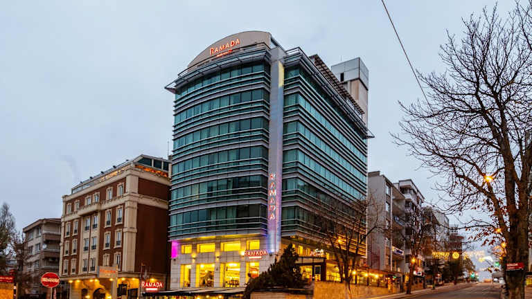 Das Ramada Ankara Hotel bietet eine erstklassige Lage im Herzen von Ankara, in der Nähe von Geschäfts- und Vergnügungsvierteln. Die modernen Zimmer verfügen über Annehmlichkeiten wie einen LCD-TV, kostenloses WLAN und einen Balkon. Genießen Sie italienische und internationale Küche in den beiden Restaurants des Hotels und starten Sie jeden Morgen mit einem reichhaltigen Frühstücksbuffet. Das Hotel bietet auch einen Whirlpool und ein Fitnessstudio für Entspannung und körperliche Betätigung.