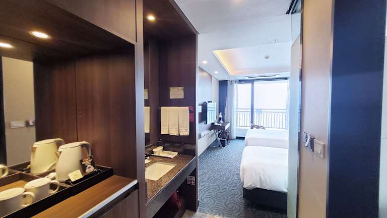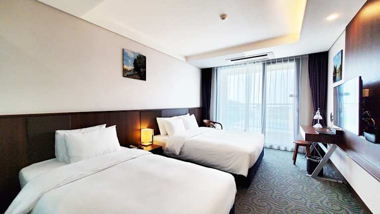 Im Ramada by Wyndham Gangwon Sokcho stehen 556 Gästezimmer und Suiten zur Verfügung. Jede Unterkunft verfügt über einen eigenen Balkon mit Blick auf die Berge oder das Meer. Die Zimmer sind komfortabel eingerichtet und bieten Annehmlichkeiten wie eine Minibar, kostenloses Wasser und Tee sowie ein eigenes Badezimmer mit einer Regendusche. Bademäntel, Hausschuhe und kostenlose Pflegeprodukte sind ebenfalls vorhanden.