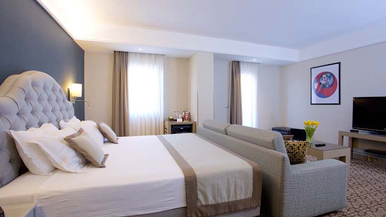 Die Zimmer sind modern eingerichtet und bieten Annehmlichkeiten wie Klimaanlage, Heizung, einen Safe, eine Minibar sowie einen Kühlschrank. Zu den weiteren Ausstattungen gehören ein TV-Gerät mit Satelliten-/Kabelempfang, ein Telefon, ein Bügelset und ein Hosenbügler. Die Badezimmer sind mit einer Dusche und einer Badewanne ausgestattet und verfügen über Haartrockner sowie Kosmetikartikel. Einige Zimmer bieten zudem einen Balkon oder eine Terrasse mit Stadtblick. Es sind auch rollstuhlgerechte Zimmer mit entsprechenden Badezimmern verfügbar.