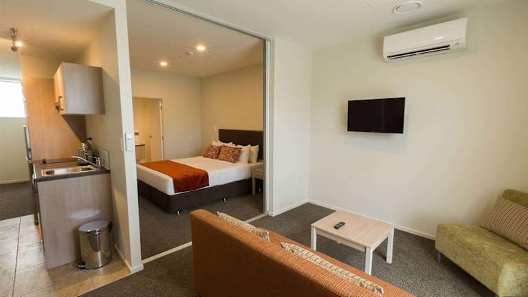 Die klimatisierten Zimmer im Ramada Suites by Wyndham Christchurch City sind modern und komfortabel eingerichtet. Jedes Zimmer verfügt über eine Waschmaschine und einen Wäschetrockner, so dass die Gäste ihre Kleidung bequem waschen können. Die Zimmer sind mit einer Küchenzeile ausgestattet, so dass die Gäste sich selbst versorgen können. Das eigene Bad ist mit luxuriösen Pflegeprodukten und einem Haartrockner ausgestattet. Ein Flachbild-LCD-TV sorgt für Unterhaltung und WLAN ist in allen Zimmern verfügbar.
