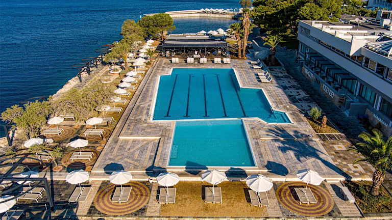 Das Ramada Loutraki Poseidon Resort in Loutráki bietet seinen Gästen eine perfekte Lage direkt am Strand. Das Resort ist nur eine Autostunde von Athen und dem Flughafen entfernt. Hier erwartet Sie ein Wellnessbereich und ein Fitnesscenter für Ihre Entspannung und Fitness. WLAN ist in allen Bereichen kostenlos verfügbar und die hauseigene Bar lädt zum Verweilen ein. Die Zimmer sind klimatisiert und mit einem Flachbild-TV ausgestattet. Das Resort bietet einen Außenpool mit Sonnenliegen und einen einzigartigen Blick auf den Korinthischen Golf. Wassersportmöglichkeiten, Tennis und Tischtennis werden ebenfalls angeboten. Das Ramada Loutraki Poseidon Resort ist der perfekte Ort für einen unvergesslichen Urlaub.