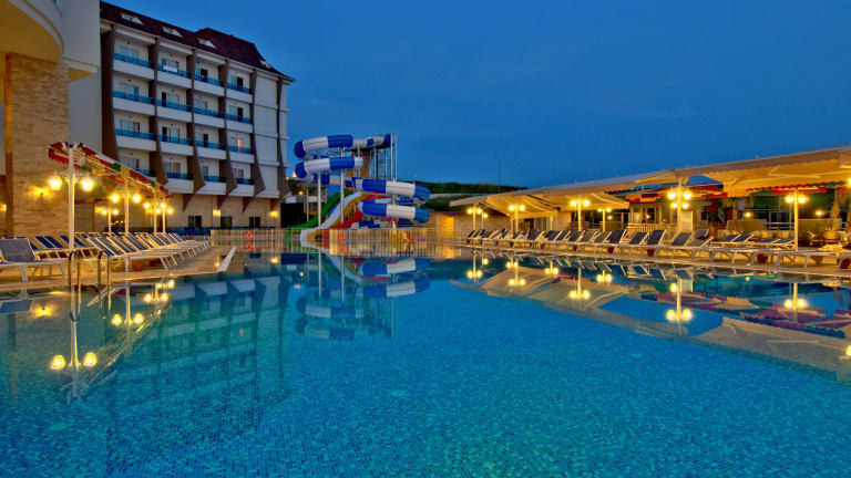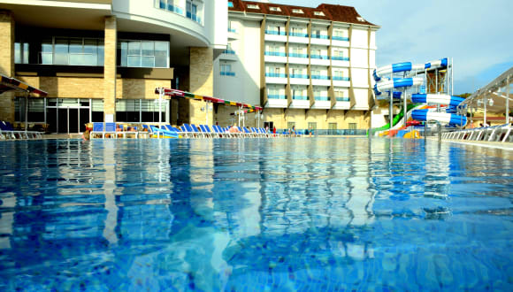 Unser Hotel besitzt einen Aussenpool mit Aquapark und einem Kinderbecken. In unserem Wellnessbereich erwarten Sie ein Türkisches Bad, eine Sauna und ein Fitnessraum. Unser professioneles Personal berät Sie gerne über Massagen und kosmetische Anwendungen. Das Gamecenter bietet Ihnen Dart, Billard und Tischtennis an. Tägliche Animation , Freizeitaktivitäten und abendliche Unterhaltung kommen natürlich auch nicht kurz. Den perfekten Ausklangen finden Sie in unserer Hoteleigenen Diskothek. Der Miniclub ( 4- 12 Jahre ) steht Ihnen kostenfrei zur Verfügung.