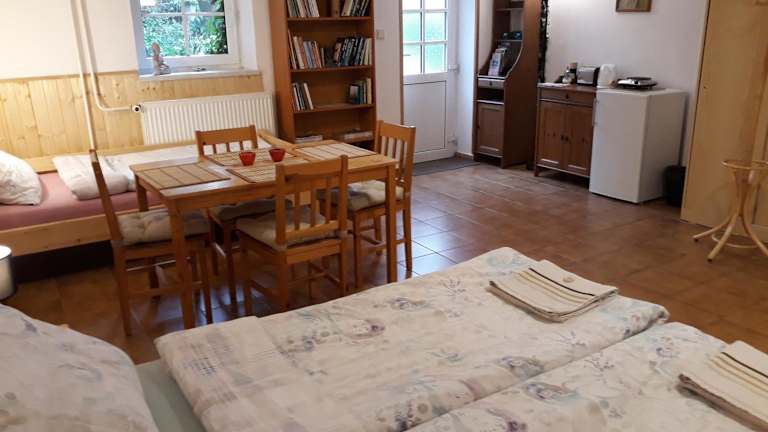 Die Ranch 79 befindet sich in Smědčice, einer malerischen ländlichen Gegend. Sie bietet eine ruhige Umgebung, umgeben von Natur und weit weg vom Trubel der Stadt. In der Nähe befinden sich das Westböhmische Museum und die Galerie Jiří Trnka, die einen Besuch wert sind. Der internationale Flughafen Karlsbad ist etwa 75 km entfernt und gut erreichbar.