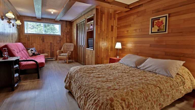 Nach einem Tag voller Aktivitäten wie Wandern oder Radfahren können Sie im Garten oder in der Gemeinschaftslounge entspannen. Die Ranch St-Hubert bietet auch einen Grillplatz, an dem Sie köstliche Mahlzeiten im Freien genießen können.